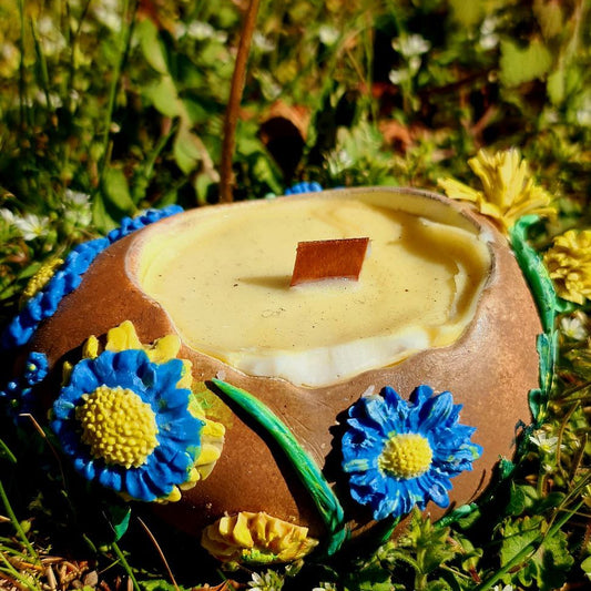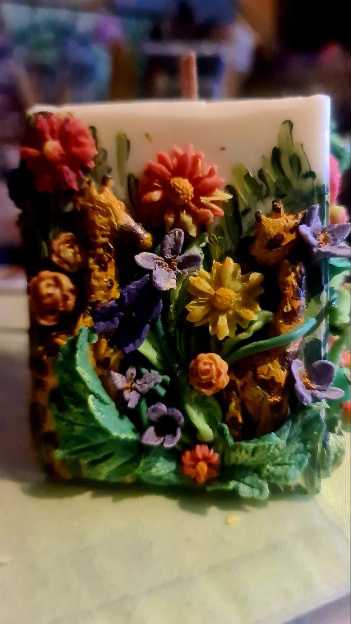 Handmade Candle in Gypsum Candleholder with Polymer Clay Flowers