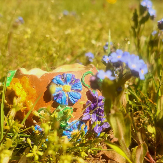 Handmade Candle in Gypsum Candleholder with Polymer Clay Flowers