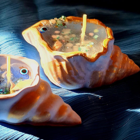 Handmade candle in gypsum container “shell” two-piece set